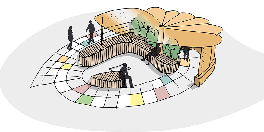 En lien direct avec les aménagements intérieurs, le projet extérieur a permis d’aménager plusieurs terrasses dont une comportant un geste architectural sous la forme d’une canopée mais aussi de rendre accessible aux PMR l’entrée principale ainsi que les accès aux places de stationnement intérieures au site.