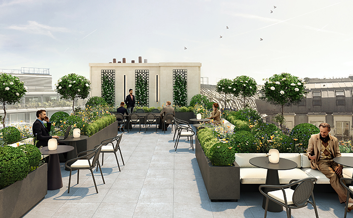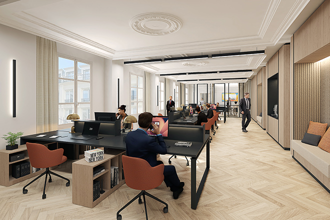 Évoquant les jardins à la française d’antan, le projet vise à rendre de sa superbe à la cour, et à réintégrer le bâti dans son histoire. Le design intérieur des bureaux est un dialogue subtil entre le passé et le présent.