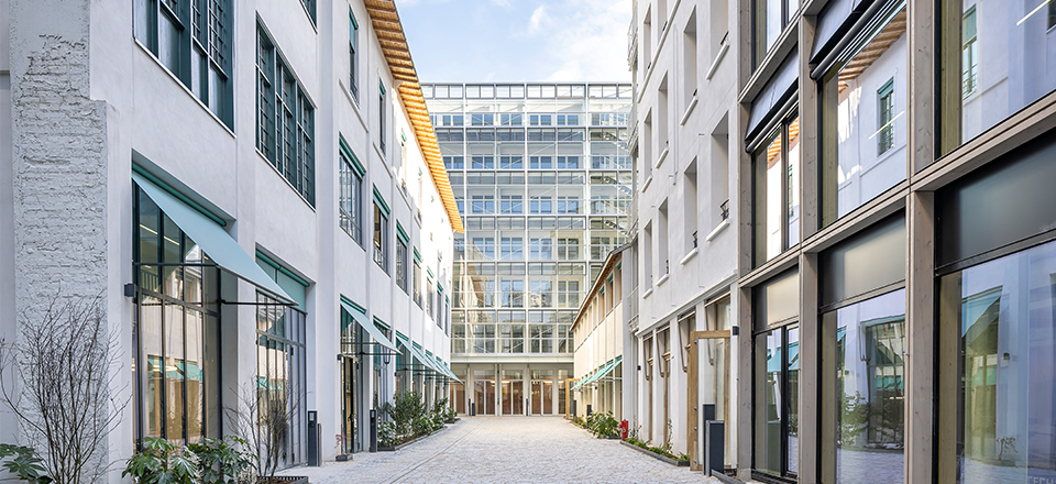 - Des bureaux et espaces de coworking articulés autour d’une venelle.
