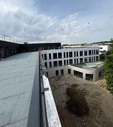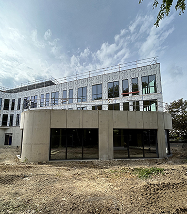 Sur le chantier, les équipes assemblent une ossature bois, un choix constructif maîtrisé visant à limiter l’empreinte carbone. Pas de climatisation, pas de faux plafonds : ici, le bâtiment se suffit à lui-même et crée sa propre architecture intérieure.